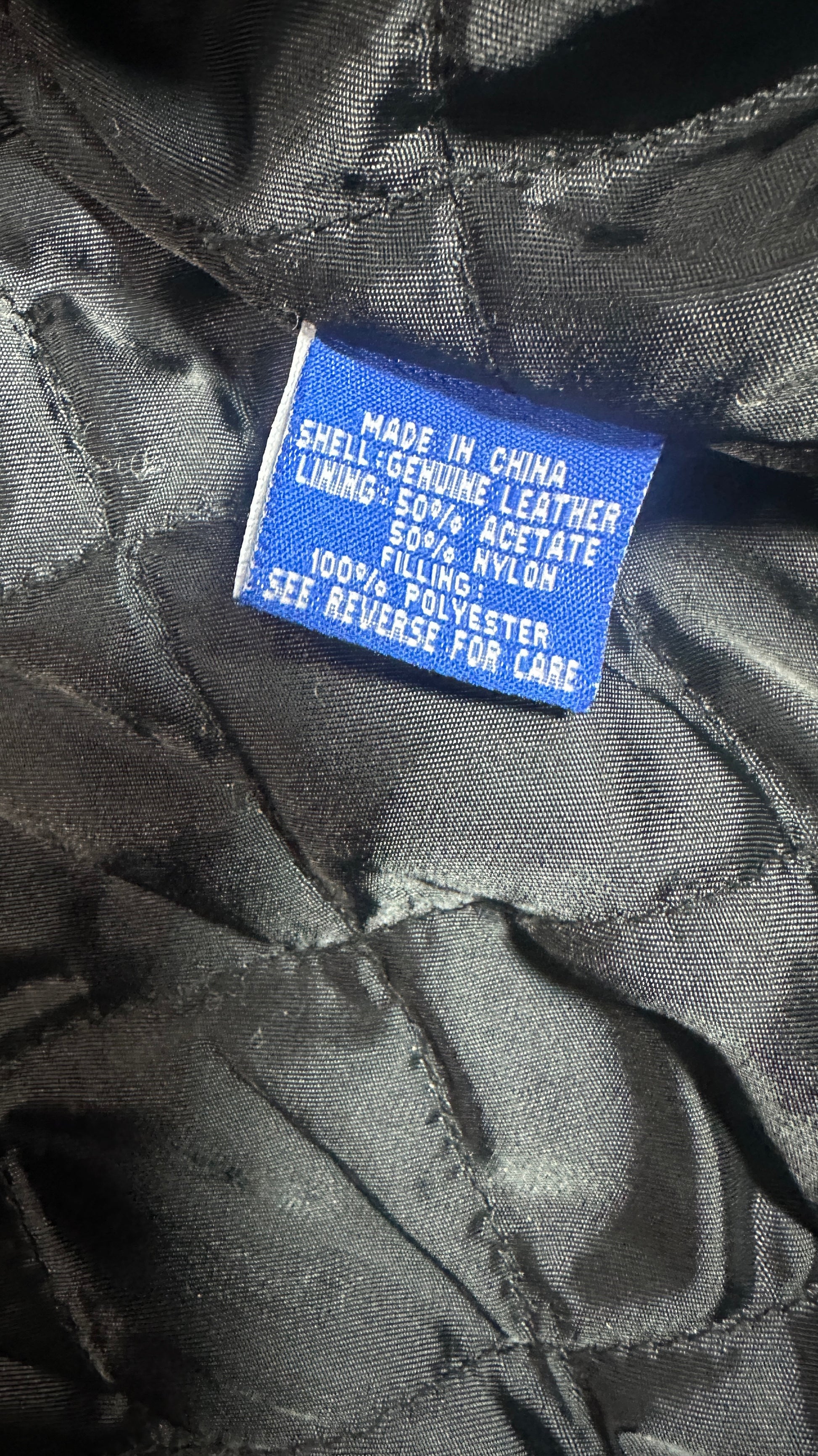 Great vintage condition. Genuine leather is soft and well-preserved with natural wear consistent with age. No major rips or damage. Patches and embroidery are clean and vibrant. Interior quilting intact.